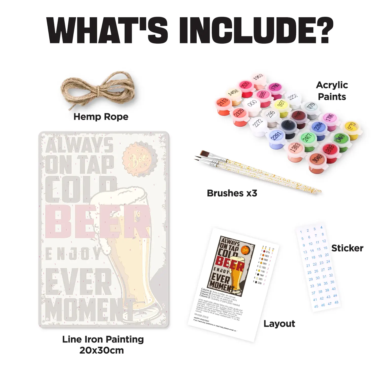 You will get all the tools and accessories required to complete your metal poster paint by numbers project in the kit.
