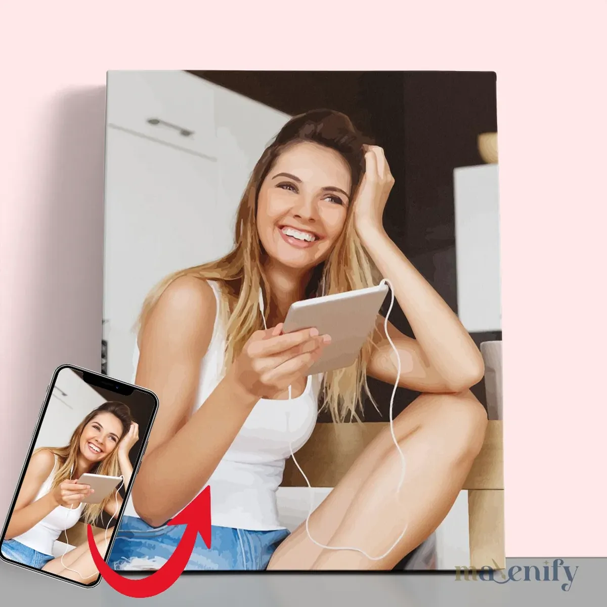 You can use your photo to create a personalized paint by number kit. Just upload your photo when placing your order, and it will be transformed into a paint by number canvas for you to enjoy.