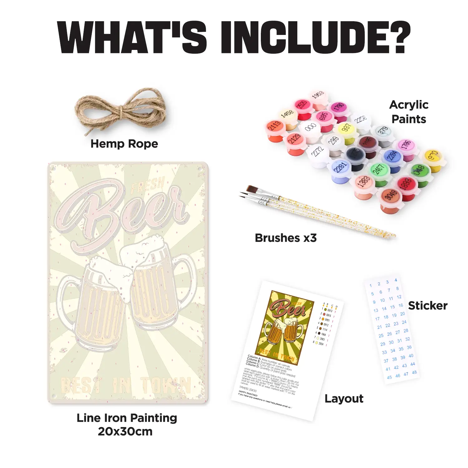 You will get all the tools and accessories required to complete your metal poster paint by numbers project in the kit.