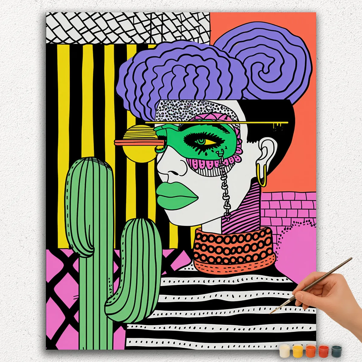 Unleash your inner artist with our Woman Pop Art Paint by Numbers kit. This vibrant set lets you create a stunning portrait of a woman in bold, pop art style. The kit includes a pre-printed canvas, acrylic paints, and brushes